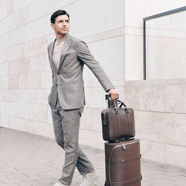 Our briefcases carry everything you need for the office, the daily commute, and anywhere in between. Made from a durable premium nylon, The CP25 Business Briefcase has a structured and roomy interior that can fit your work essentials - it fits up to a 15" laptop, and has zippered pockets for phone, chargers and other essentials. It comes with a leather strap, and attaches seamlessly and securely over the handle of any Legacy suitcase. This is a demonstration store. Products are for purchase from Vocier.